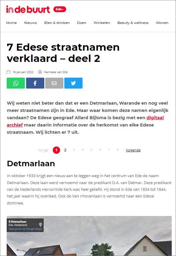Deze artikelen schreef ik voor de Edese Vos, als samenvatting van inhoud uit de Atlas van Ede.