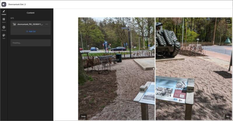 Voor het maken van 360 graden foto's heb ik een speciale camera. Met één druk op de knop heb je zo'n mooie foto waarbinnen je kunt rondkijken. Dergelijke foto's kun je verwerken met Google Streetview, maar ik gebruik daarvoor een aparte service: Panoraven. Die biedt een embed-oplossing aan voor dergelijke foto's. Voorbeelden: [ klik hier ]