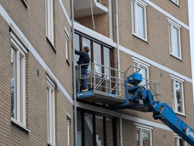 In december 2025 werd groot onderhoud gepleegd aan het complex. Alle ramen en kozijnen werden vervangen door kunststof versies en energiezuinig glas. Foto's: Allard Bijlsma.