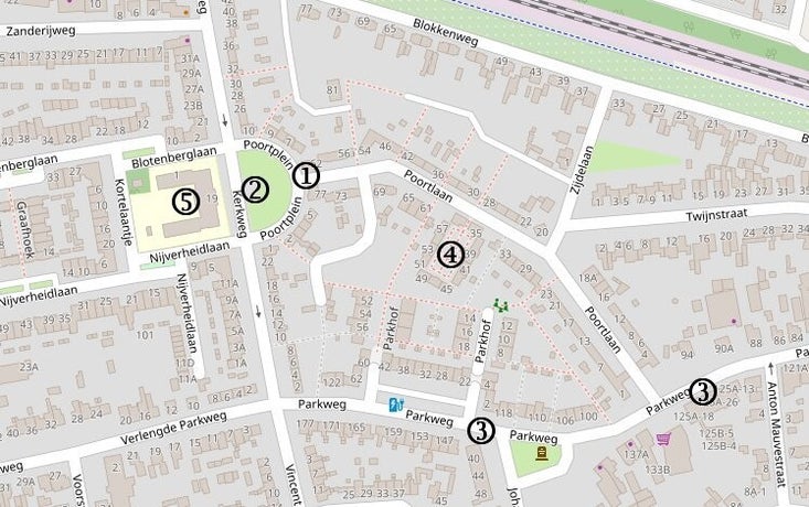 Het hofje is vrij toegankelijk via de Poortlaan. Respecteer hier de bewoners.