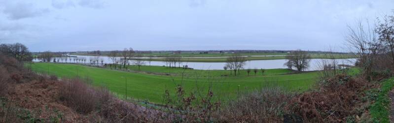 Uitzicht vanaf de stuwwal, op de Nederrijn en uiterwaarden.