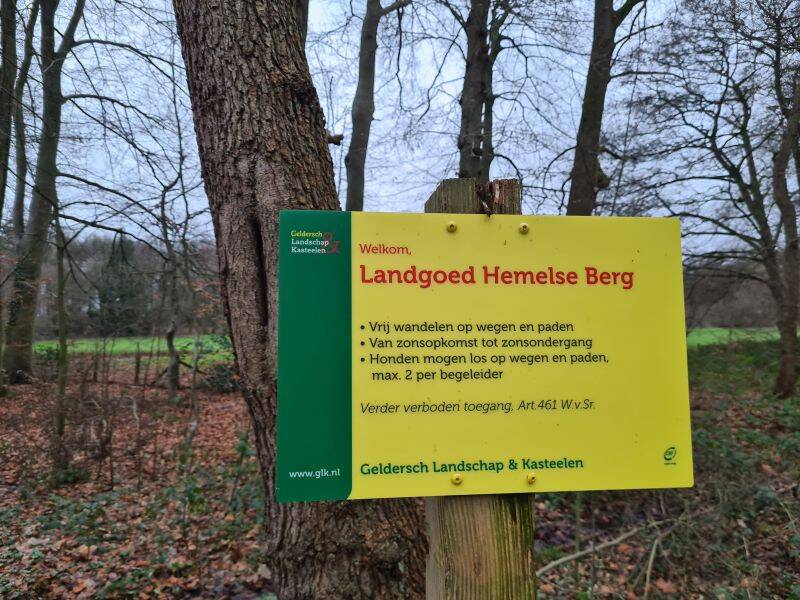 Landgoed De Hemelse Berg grenst aan Landgoed De Oorsprong, waar deze spreng loopt.