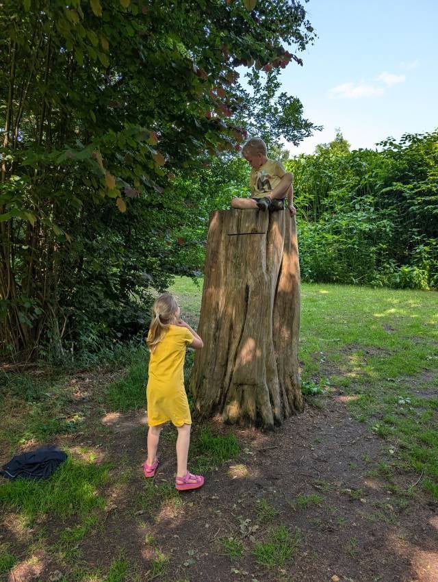 Door het speelbos is een route uitgezet met diverse doe-activiteiten voor jonge kinderen.