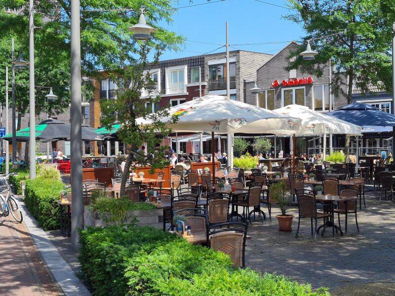 Het Museumplein is de laatste decennia hét uitgaansgebied voor Ede geworden. Dat was niet altijd zo. In het verleden ging je vooral uit aan de Parkweg en bij discotheken rond het centrum. Het plein sluit aan op de bekende winkelstraten van Ede. Op het plein staat ook het monumentale station Ede-Centrum. Bij mooi weer is het heerlijk vertoeven op de terrassen hier. Alle foto's: (c) Allard Bijlsma.