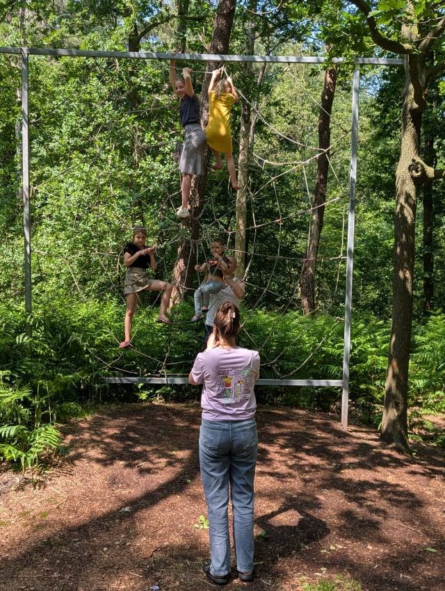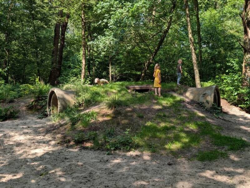 Door het speelbos is een route uitgezet met diverse doe-activiteiten voor jonge kinderen.