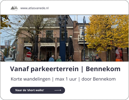 Deze wandelingen door en rond Ede van maximaal 1,5 uur zijn exclusief ontwikkeld voor de Atlas van Ede en gratis beschikbaar. Dit zijn de beste wandelroutes als je een korte wandeling wilt maken. Veel online aangeboden wandelingen zijn tientallen kilometerslang, terwijl je misschien gewoon even de benen wilt strekken, in een werkpauze een rondje wil lopen, een paar dagen verblijft in de Reehorst of het Akoesticum, je hond wilt uitlaten of simpelweg geen fan bent van lange-afstands-wandelen. Bij elke route zit een: foto-diashow, een (afdrukbare) routebeschrijving en een overzicht van de bezienswaardigheden. Ze worden regelmatig herzien en aangepast. Dit onderdeel is rechtstreeks bereikbaar via: www.wandelendoorede.nl