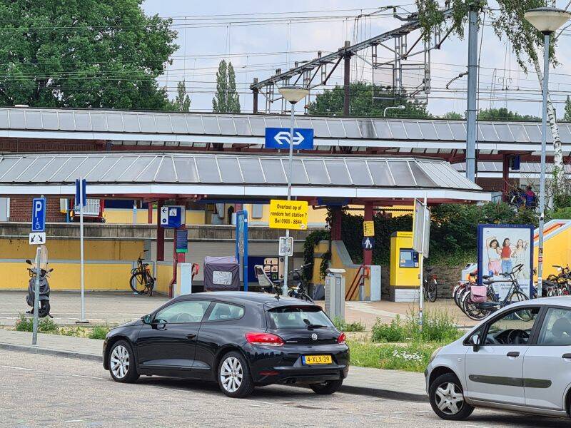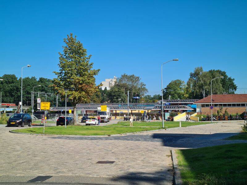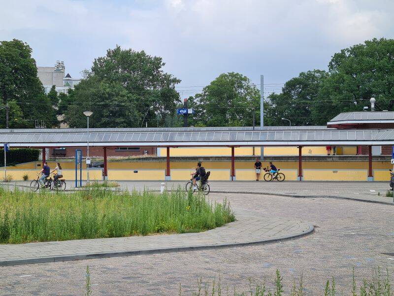 Situatie 2021 | dit gebied verandert de komende jaren sterk. Dit plein en de stationsgebouwen hier, zullen in 2024 verdwijnen. Ter hoogte van de Stationsweg komt in 2024 een fietstunnel die deel uitmaakt van de snelfietsroute Ede-Wageningen.