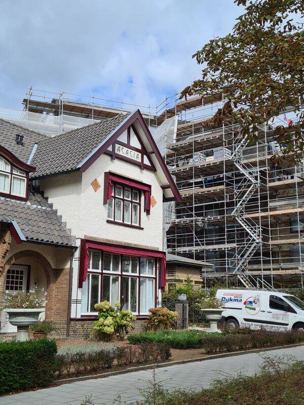 Helaas is de aanblik van de prachtige huizen in de Oranjelaan anno 2023 onderhevig aan het erachter gebouwde 'Op de Kop'.