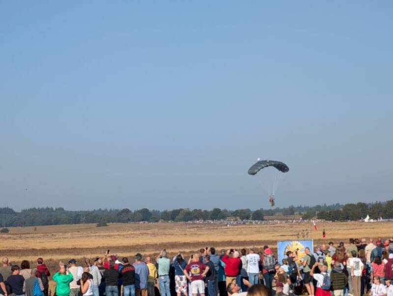 Ieder jaar op de 3e zaterdag van de maand september, landen er op de Ginkelse Heide enkele honderden militaire parachutisten. Dit ter herinnering aan de landingen in 1944 rond Operatie Market Garden. Er zijn shifts in de ochtend en in de middag. Het al dan niet doorgaan is afhankelijk van het weer (mist/ wind) op die dag. Rondom de heide staan dan foodtrucks, marktkramen en tijdelijke toiletten. Normaal trekt de dag 30-50.000 bezoekers. In 2020 zijn de landingen niet doorgegaan. In 2021 waren er eenmalig 15.000 toeschouwers. Wil je meer weten over het 'tracken' van de Herculesvliegtuigen tijdens de operatie, kijk dan [ hier ]. Zie ook bij [ Geschiedenis - 18-sep-1944 ]. Alle foto's: (c) Allard Bijlsma.