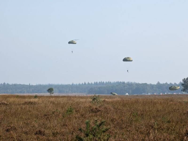 Enkele dagen voor de zaterdag van de landingen, wordt er uitgebreid proefgesprongen op de Ginkelse Heide. Je kunt dan gewoon de heide opgaan en daar gaan kijken, mits je niemand in de weg loopt. Deze video's en foto's zijn gemaakt op donderdag 19 september 2024: