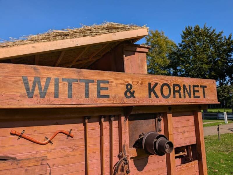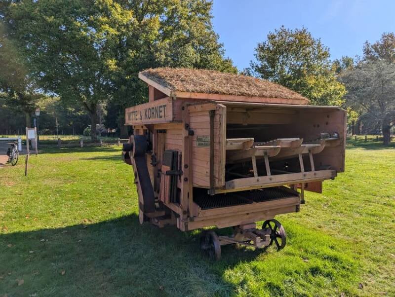 [15] Hier zie je het werk De Graankiosk van Janneke Kornet & Marjolein Witte: een historische dorsmachine die is herbouwd tot sculptuur en ontmoetingsplek, verweven met de lokale agrarische geschiedenis (graanproductie op landgoed Kernhem).