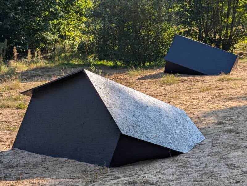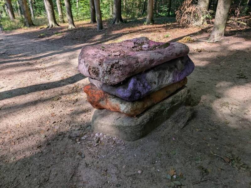 [14] Dit kunstwerk 'Give and Take', van Esther Hoogendijk, bedekte tijdelijk de Bloedsteen aan de Doolhoflaan, in het Edese Bos.