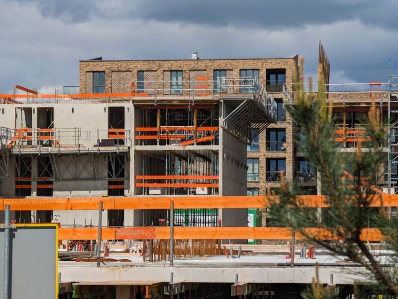 Dit gebouw wordt gebouwd op het voormalige rangeerterrein van de ENKA-fabriek. Het sluit aan op het nieuwe station Ede-Wageningen en het begin 2023 opgeleverde H4-gebouw van Woonstede. Eind 2025 moeten de bewoners erin kunnen. Zie voor nog meer foto's [ hier ]. Alle foto's: (c) Allard Bijlsma.