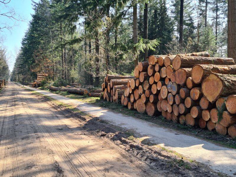Bosgebieden die worden beheerd door natuurorganisaties, kennen vaak wel enige vorm van bosbouw, maar echt grootschalig wordt daar meestal geen bos (meer) gekapt. Heel anders is dat in bosgebieden van particuliere eigenaren. Het regelmatig kappen van stukken bos is daar een zaak van geld, benodigd voor onderhoud en beheer van het gebied. Voorbeeld is het bosgebied De Valouwe, in eigendom van de familie Schlimmer, die het in 1928 kocht. De foto's zijn voorjaar 2022 gemaakt, aan de Immenweg, die loopt vanaf de Edeseweg tot aan de Apeldoornseweg. Deze foto's: maart 2022.