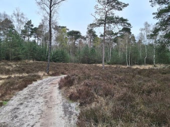 Zie de kaart. Ten oosten van de Zuid-Ginkel (3) ligt een zogenaamd droog dal. Vroeger stroomde hier de aanvoerbeek van de Renkumse Beek (Molenbeek) die nu bij (4) 'ontspringt'. Het betreft daar echter een ingegraven spreng. Door het droge dal slingert nu een zandpad, waardoor je dit dal eenvoudig kunt volgen, vanaf de N224 tot aan de A12 of andersom. Deze foto's: precies tussen N224 en de A12 (rode deel op kaart).
