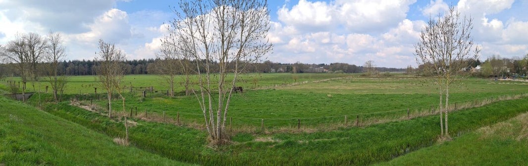 Hier komt de Renkumsebeek boven de grond. In de verte zie je de A12.