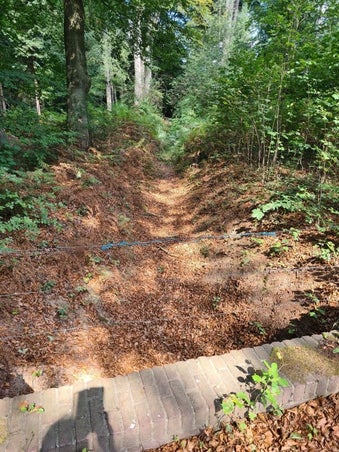 Hier passeert de nog droge beek de Dr. Hartogsweg (Parallelweg).