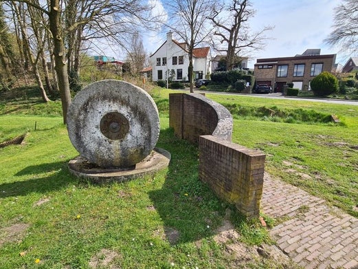 Aan de Hartenseweg stonden ooit vier watermolens, drie watermolens en éen graanmolen. Eén van de watermolens was een oliemolen. In 1858 ontstond hier een fabriek op basis van stoomkracht. In 1981 ging Van Gelder papierfabriek failliet. Het monument is gemaakt in de muur van de fabriek en toont papierrollen.