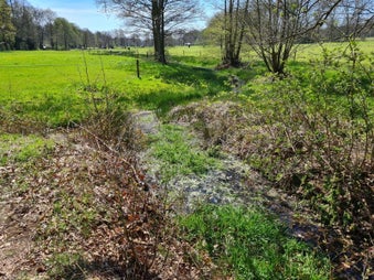 Soms staan de beken ook aardig droog. Deze foto's: 2020. Gezien vanaf de weg Quadenoord.