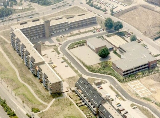 Waar nu dit complex staat, lagen vroeger meerdere straten met kleine huizen. Het hele buurtje is afgebroken voor het aanleggen van de Raadhuisstraat en het doortrekken van de Molenstraat. Het is in 1983 in gebruik genomen. Alle recente foto's: (c) Allard Bijlsma.