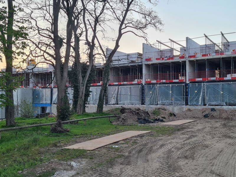 Maart 2024 was het complex vrijwel gereed. Binnen werd nog hard gewerkt aan de keukens, badkamers en vloeren.