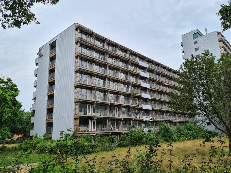 Start bouw: 2023. Dit gebouw vervangt het huidige gebouw, dat al jaren leeg stond en waarbinnen de kamers van deze verzorgingsflat niet meer voldeden aan de eisen van deze tijd. De officiële opening van dit oude gebouw was op 20 november 1970. In het nieuwe complex komen 78 koopappartementen. De bouw van de huurappartementen ernaast ligt vervolgens stil tot begin 2025. Voorjaar 2025 wordt alsnog gestart met de afbraak van het oude complex en dan zal in ieder geval de bouw van de koopappartementen starten. Op 14 januari 2025 was hiervoor een 'sloopevent' georganiseerd, als aftrap voor de sloopwerkzaamheden. Eind 2025 werd ook weer verder gebouwd aan de huurappartementen, waarvan de bouw in 2023 is gestopt. Zie voor impressietekeningen en informatie [ hier ]. Alle foto's: (c) Allard Bijlsma.