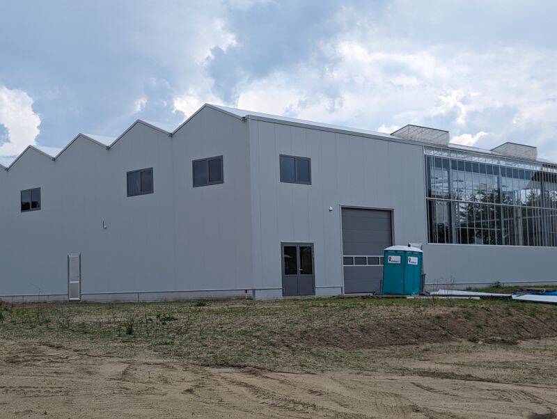 Naast de Stingerbol verrijst een grote moderne plantenkas. Het Wageningse bedrijf SAIA Agrobotics heeft een vergunning van vijf jaar, voor het complex op deze plek. Daarna zal het weer verdwijnen en plaats maken voor kantoren en woningen. SAIA Agrobotics, een tech spin-off van Wageningen University & Research, ontwikkelt roboticatechnologie voor de glastuinbouw. SAIA ontwikkelt robots die menselijke handelingen in kassen kunnen overnemen. Naar website: [ klik hier ].