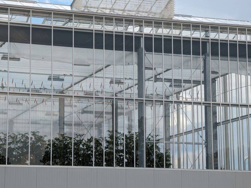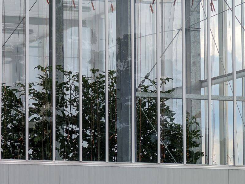 Voorjaar 2024 is de kas in gebruik genomen en in mei waren de tomatenplanten goed te zien.