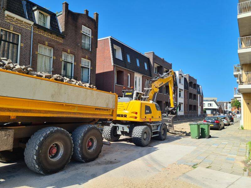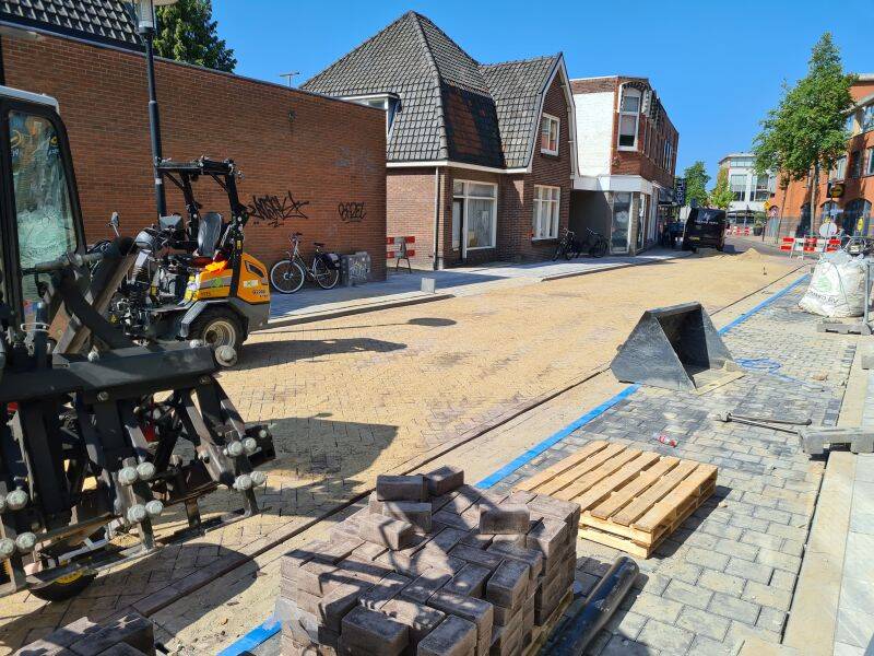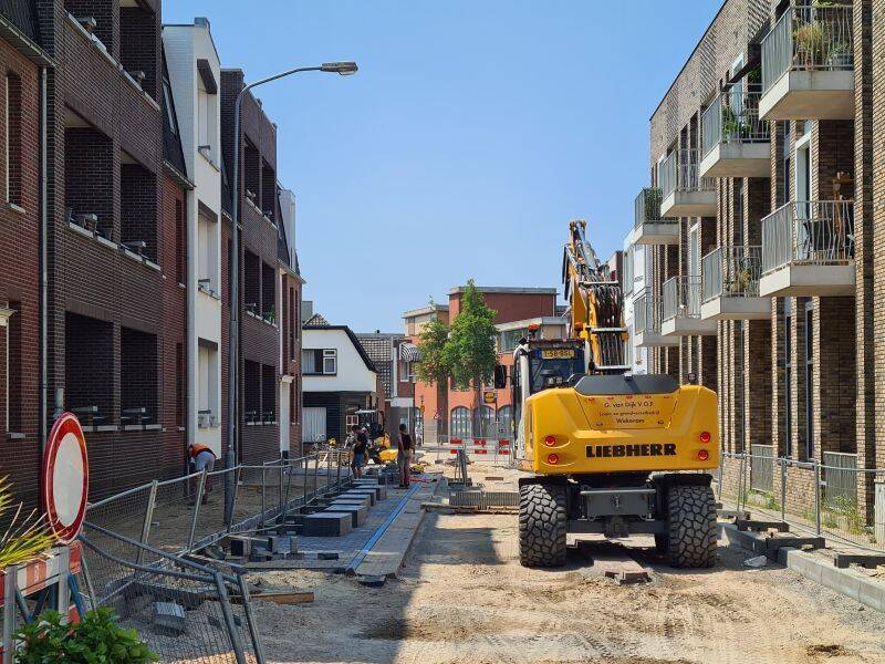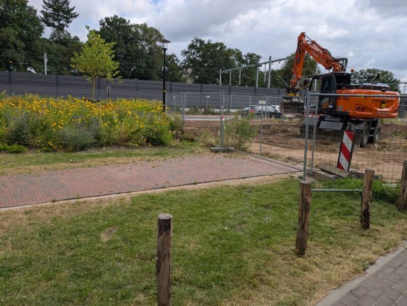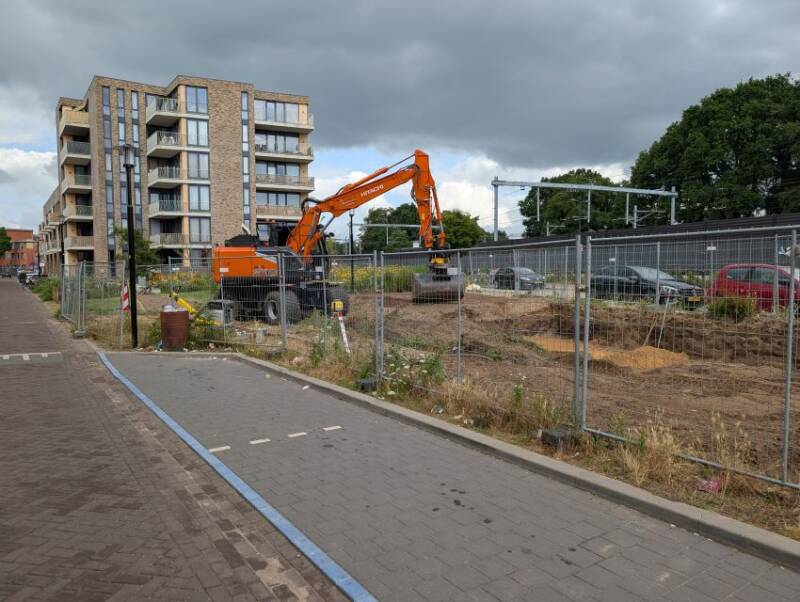 Nu de bouwvak voorbij is, is ook het werk op de kop van de Parkweg weer hervat. Gezien het vele uitgevoerde werk deze week, zal hier snel een gebouw staan. Foto's: Mieke Tuijn | 28 augustus 2025.