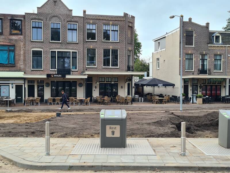 De Parkweg en de ruimte tussen de horeca en het fietspad wordt opnieuw bestraat (steentjes) en ook hier zullen bomen worden geplant. Het einde van de Parkweg zal weer aansluiten op de Oranjelaan en op de snelfietsroute die hier in 2024 (weer) langs zal gaan.