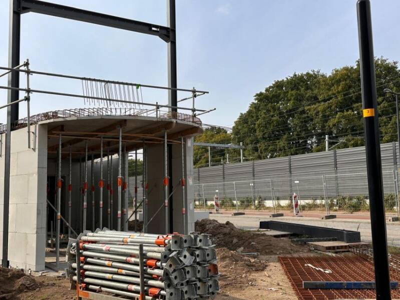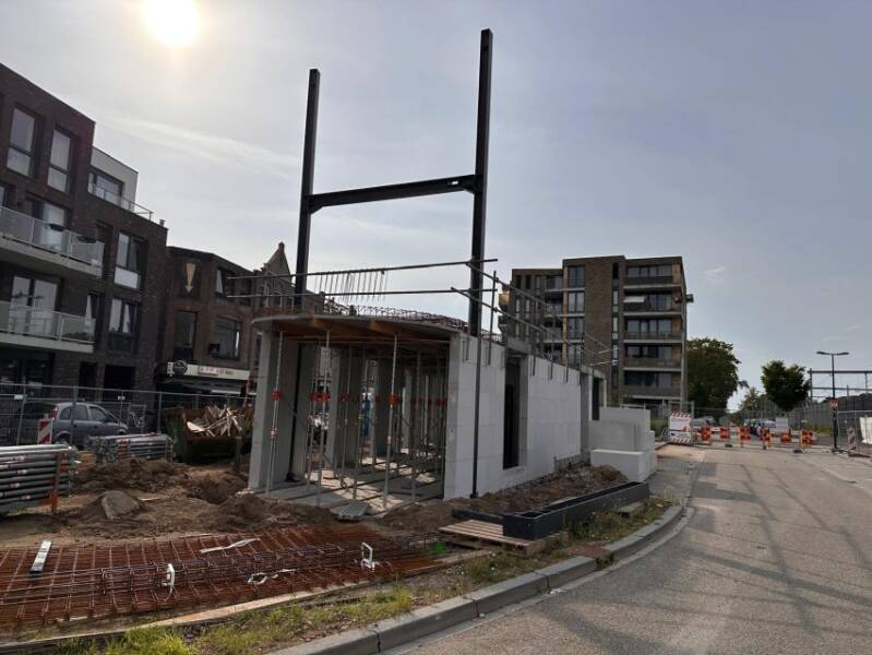 Deze foto's zijn op 6 september 2025 gemaakt door Mieke Tuijn. Aan de stalen constructie is te zien hoe hoog het gebouw gaat worden. Het ronde deel op de begane grond wordt straks glas.