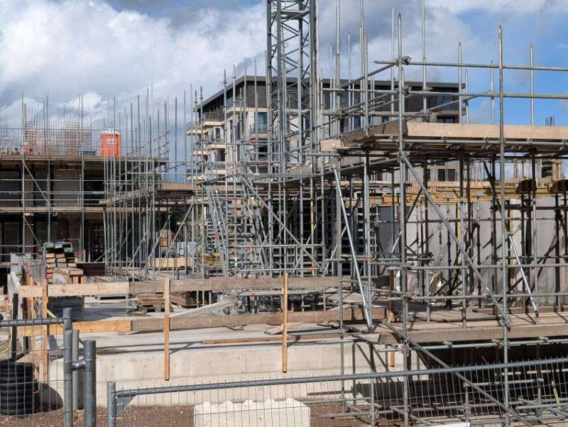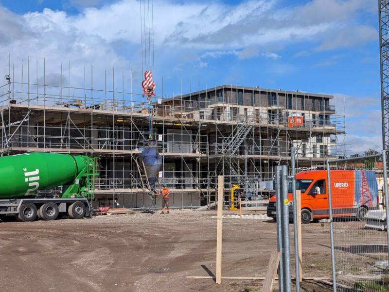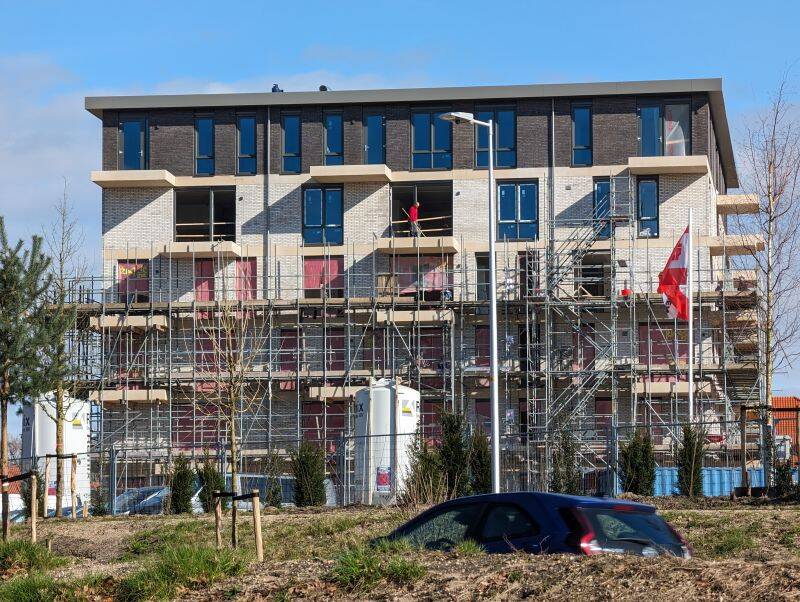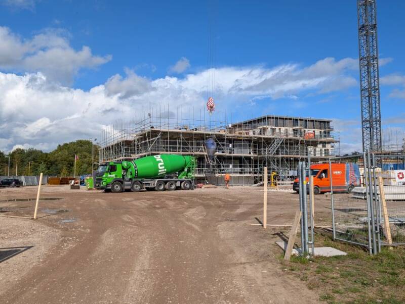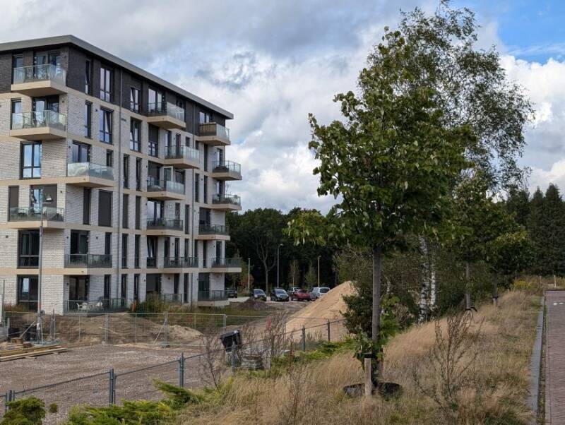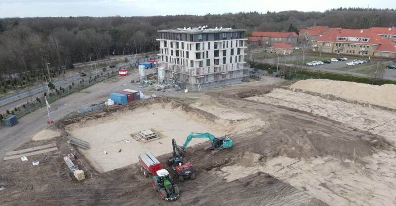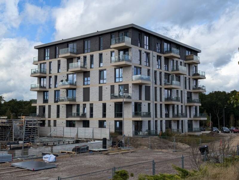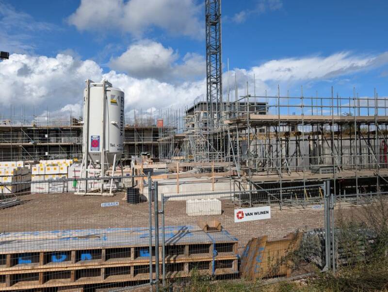 Situatie eind september 2024. De eerste toren is inmiddels bewoond en de andere twee zijn in aanbouw.