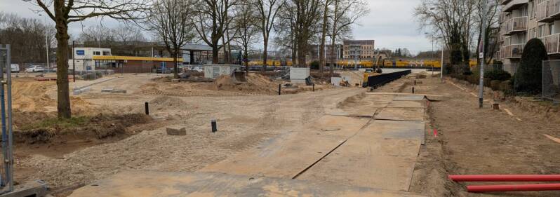 De bestrating, ter hoogte van De Witte Hinde, is verwijderd en er wordt gewerkt aan de riolering. Komende maand wordt ook gestart met de rest van de Stationsweg, die wordt omgebouwd tot een fietsstraat. [ zie hier ]