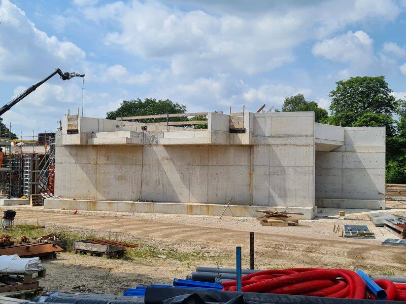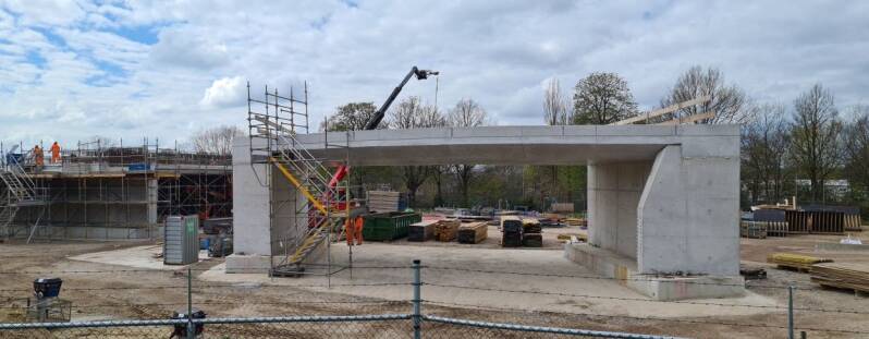 Situatie 20 juli 2023: de tunneldelen zijn klaar en de bouwer is bezig het terrein op te ruimen.