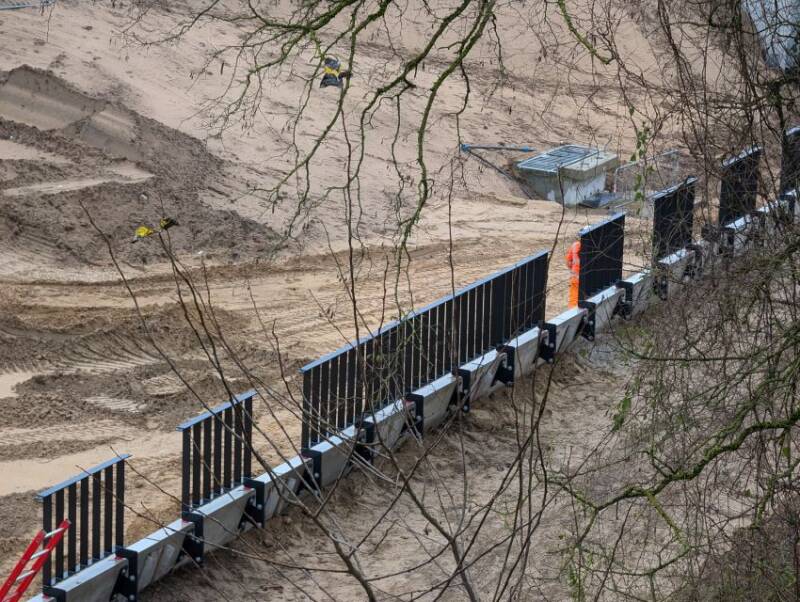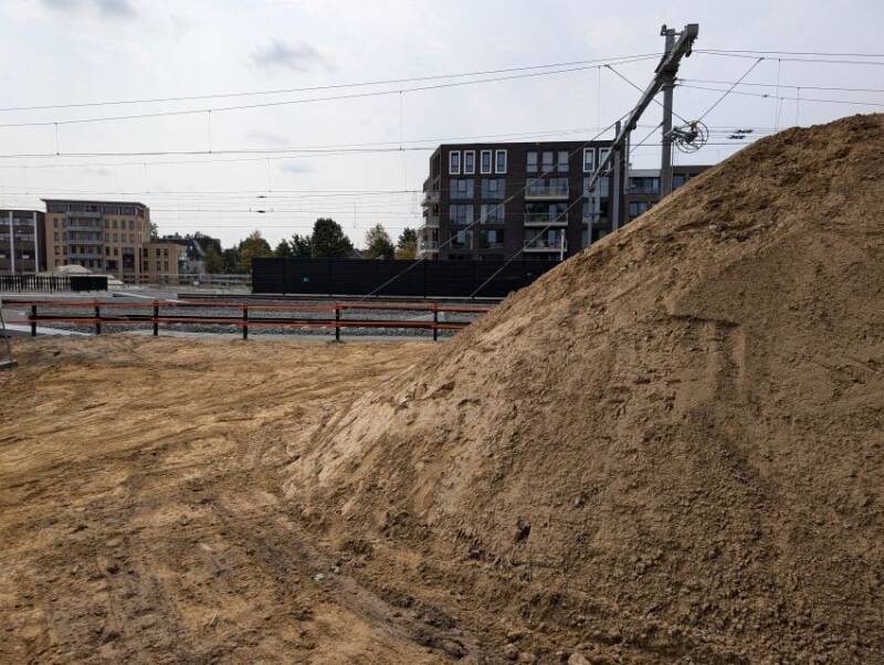 Tijdelijke helling voor aanbrengen geluidswal wordt weer verwijderd.