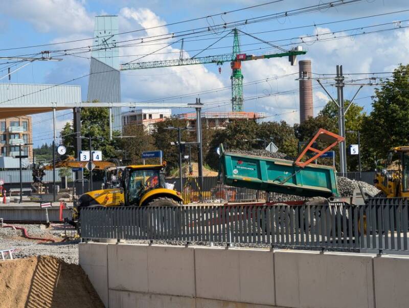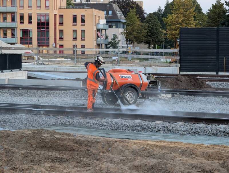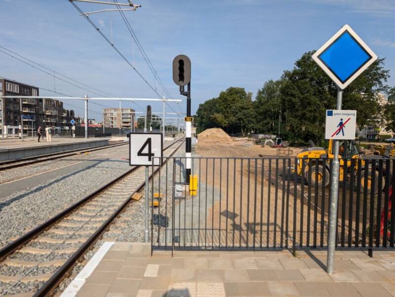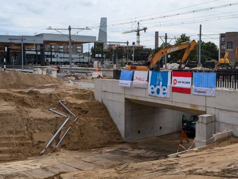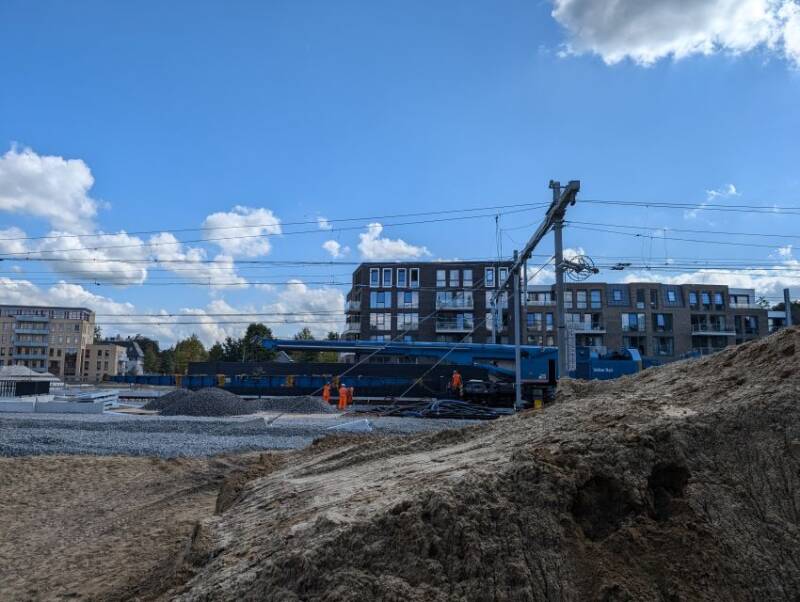 Tegelijkertijd wordt er gewerkt aan het spoor en de bovenleiding, direct naast de tunnel.