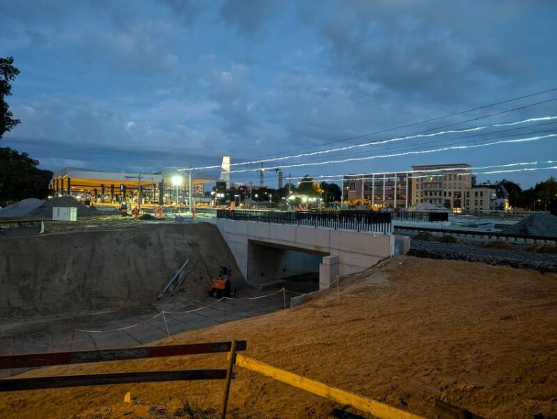 Op het terrein van het vroegere LUAS-opleidingsgebouw was vanaf begin 2023 de bouw bezig van de tunneldelen. Die liggen inmiddels klaar en zullen (pas) zomer 2024 over de weg vervoerd worden naar de tunnellocatie. In een treinvrij weekeinde wordt hier het spoor verwijderd en het talud uitgegraven. De tunneldelen zullen daarna één voor één worden in getakeld, waarna het spoor weer opnieuw zal worden opgebouwd. De bouw van de tunnel zal vergezeld gaan van de afbraak van de laatste delen van het station uit 1983. De huidige tunnel tussen de sporen zal verdwijnen.