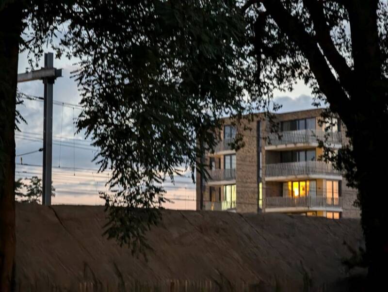 De aarden geluidswal tussen De Witte Hinde en het spoor is op hoogte gebracht. Deze wal gaat begroeid worden met bloemen en struiken.