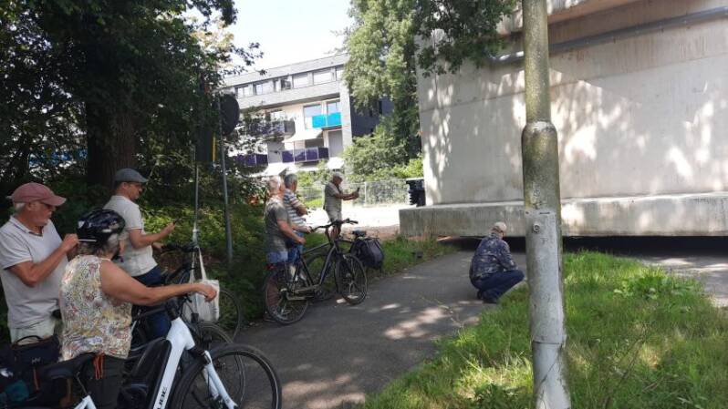Fieters rijden vanaf de zuidzijde naar de tunnel. Links in de verte interviewt 'De Gelderlander' bewoners van De Witte Hinde.