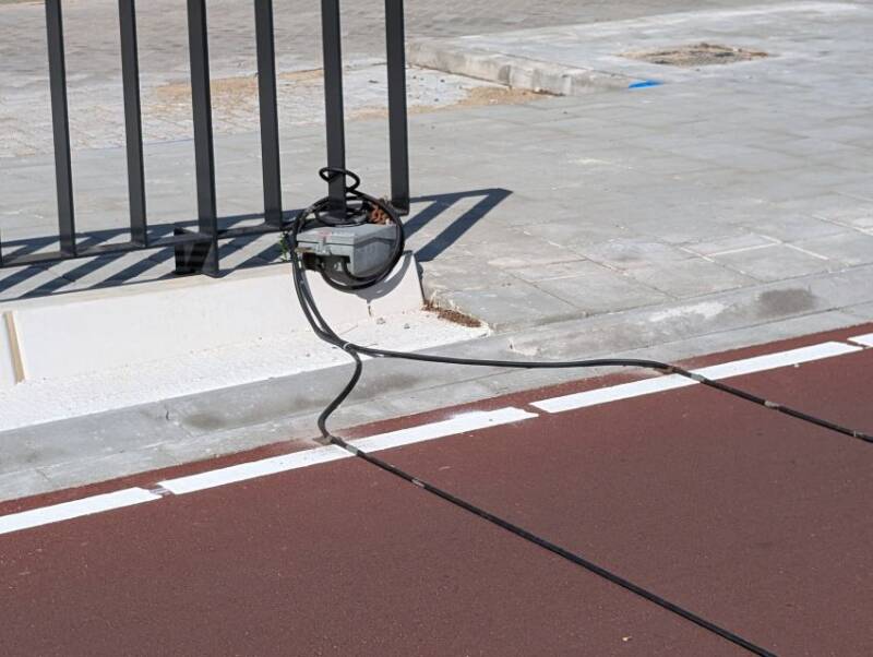 Het asfalt wordt 10 meter van de Stationsweg weer gestort.