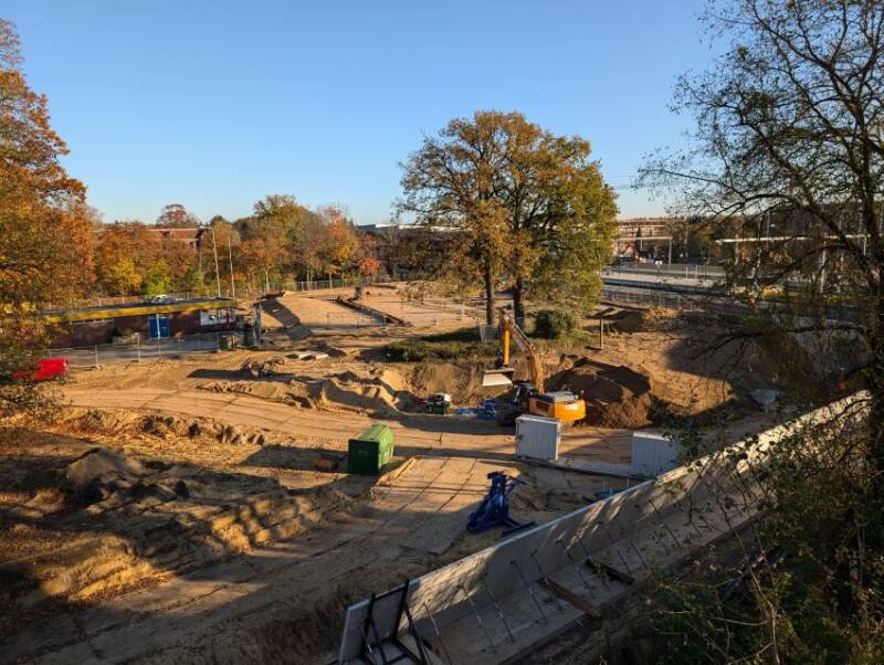Bundel kabels is in goot geplaatst, aansluiting tunnel naar grindbed is gemaakt, terrein voor fietsenstalling deel geëgaliseerd, tunnelwanden zijn bijgewerkt, aan Parkwegzijde is gewerkt aan het doortrekken van de geluidsmuur.