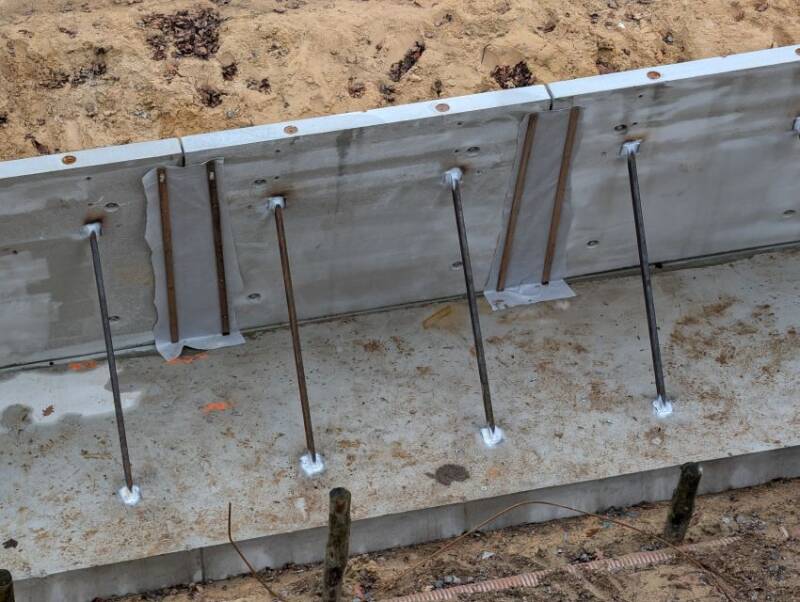 Er worden stalen balken aangebracht, om te voorkomen dat de druk van het zand de constructie aantast.