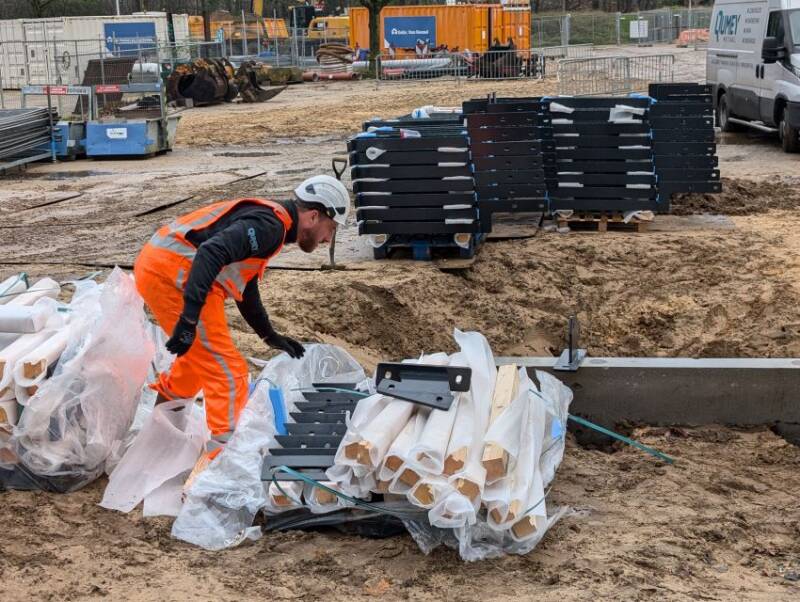 En zo kun je rustig twee dagen kijken naar het plaatsen van de putten langs het aan te leggen fietspad. Deze foto's: 21 maart 2025.