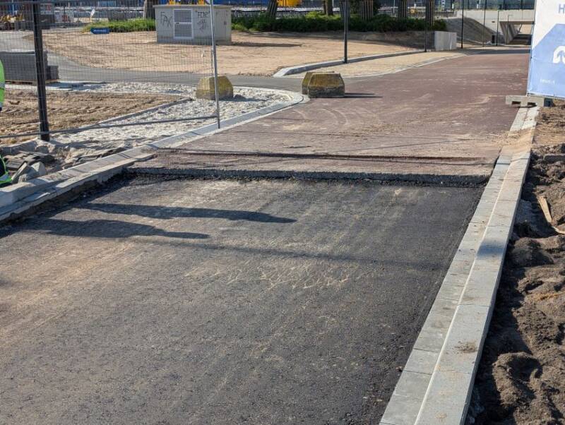 Op 18 maart 2025 is begonnen met het plaatsen van de trottoirranden tussen fietspad en voetpad. Dit betekent dat men hier eindelijk niet meer gaat graven en dat de fase van inrichten nu echt is begonnen.