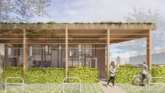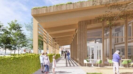 Het nieuwe gebouw krijgt ongeveer 13 m² aluminium kozijnen en circa 302 m² vliesgevels. Deze vliesgevels – grote glaspartijen in een lichtgewicht constructie – zorgen niet alleen voor een moderne uitstraling, maar ook voor veel daglicht en een open, toegankelijke sfeer in het gebouw. Het ontwerp stamt uit 2022 en de aanbesteding vond plaats in 2024. Bron afbeeldingen: BCT Architecten/ Polybouw.