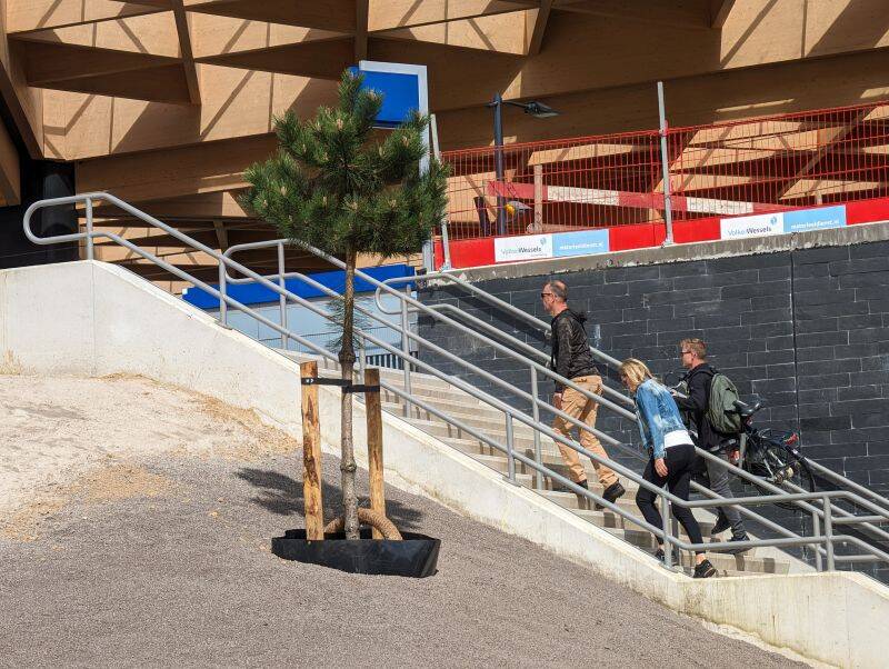 De bedoeling is dat je eind 2025 hier met de fiets aan de hand naar de trein kunt gaan. Vanaf hier is echter geen fietsenstalling toegankelijk.