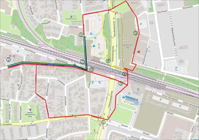 Op 29 februari stonden medewerkers van Prorail op de perrons reizigers te bevragen: "Wat vindt u van het nieuwe station?". Het station lijkt prachtig te gaan worden en is een goede oplossing voor het toenemende aantal reizigers, maar wat bij mij blijft hangen is het gebrek aan inleving van de planmakers met de gebruikers ervan en hoe deze gebruikers van deze gecreëerde omgeving gebruik willen maken. Meest in het oog springend is de volledige afsluiting van ouderen die slecht ter been zijn, rolstoelgebruikers en mensen met een kinderwagen en woonachtig rond de Stationsweg, van hun winkelcentrum aan de Parkweg. Veel ouderen kunnen niet meer fietsen en hebben geen auto meer, maar liepen tot 23 februari dagelijks door de spoortunnel naar de winkels aan de Parkweg en weer terug. Zij moeten nu langer dan een jaar helemaal voor de kazernes langs, bij perron 1 naar beneden, na perron 5 naar rechts en dan lopen ze dood op een hoge trap (5). Loop je met een rollator, zit je in een rolstoel of je bent gewoon niet stabiel in het lopen of nog simpeler: heb je een fiets, kinderwagen of een zware koffer bij je, dan is dit een trap te ver. Loop je in Utrecht het station uit richting de Jaarbeurs, dan zijn er roltrappen om dit soort hoogtes te overbruggen. In Ede heb je gewoon pech en vele tientallen ouderen missen nu al hun dagelijkse loopje naar de Spindop. Het probleem is nog niets eens hoe die nu aan hun boodschappen moeten komen; je neemt ze hen een stuk bewegingsvrijheid en een dagelijks uitje af. Voor de rest van de bewoners ten noorden van het station, is het gewoon een jaartje afzien om het station te kunnen bereiken, voor wie geen keuze heeft bij vervoermiddelen, is het effect veel groter. Mijn eigen stappenteller slaat elke dag rood uit, maar ik denk dan "goed voor de conditie hoor". Natuurlijk kun je de trap (5) ook mijden en doorlopen naar de Emmalaan (6), maar het rondje wordt gewoon te groot voor met name ouderen en het kruispunt daar steek je als oudere niet graag over. Het is net alsof van het 'Kerkweg-overgang-debacle' niets is geleerd.