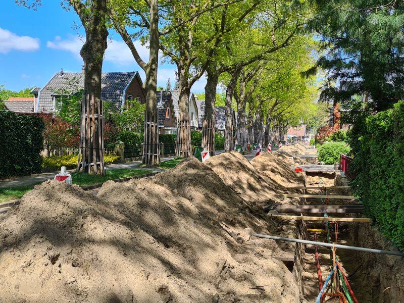 De meeste steden in Nederland hebben een achterstand in het onderhoud rond het riool. In Ede is de gemeente bezig langzaam maar zeker elke wijk te voorzien van een nieuw riool. Meestal wordt hierbij direct een splitsing gemaakt tussen 'schoon water' (regenval) en vuil water (riool). Soms wordt het schone water direct in de grond gelaten, zodat afvoer helemaal niet meer nodig is. Alle foto's: (c) Allard Bijlsma.