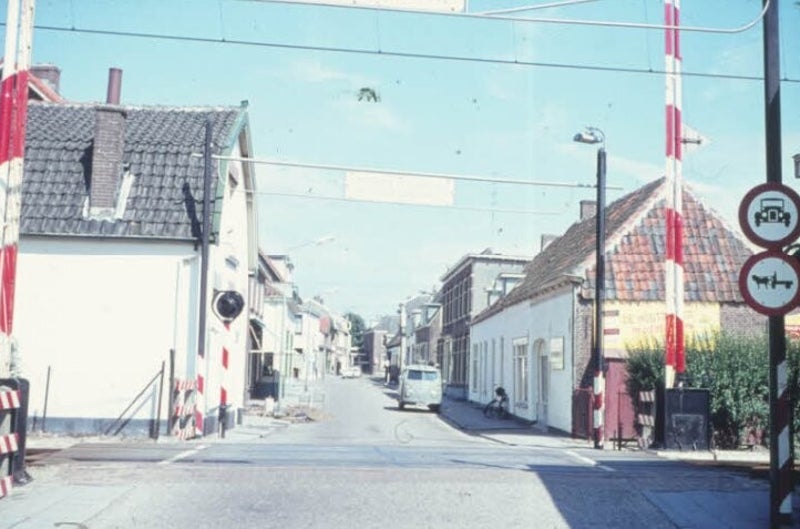 Molenstraat in 1964. Zicht richting de spoorlijn. Links is nu het Markplein. Rond 1970 is het meeste op deze foto gesloopt. Foto van Hartgers. Bron: Gemeentearchief Ede.