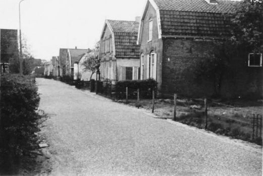 TOEN: 1967. Gezien vanaf de huidige N224 (Rijksweg) richting de Bunschoterweg. Geheel rechts zijn de eerste huizen al afgebroken. Te zien zijn de nummers 41 t/m 23. Bron: Historisch Museum Ede.